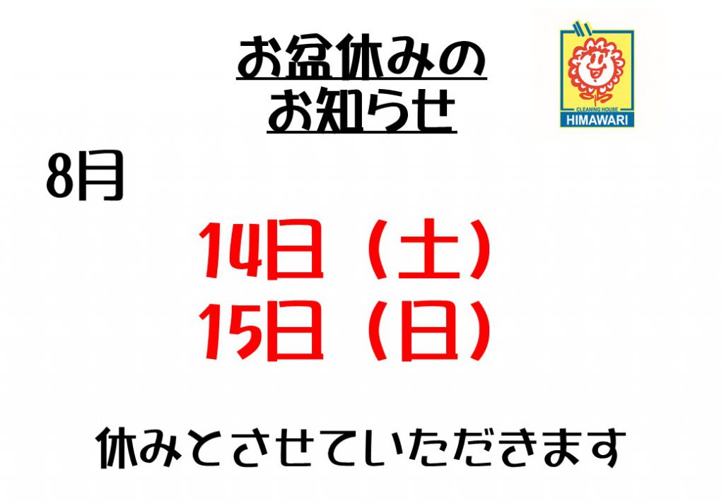 お盆休みのお知らせ