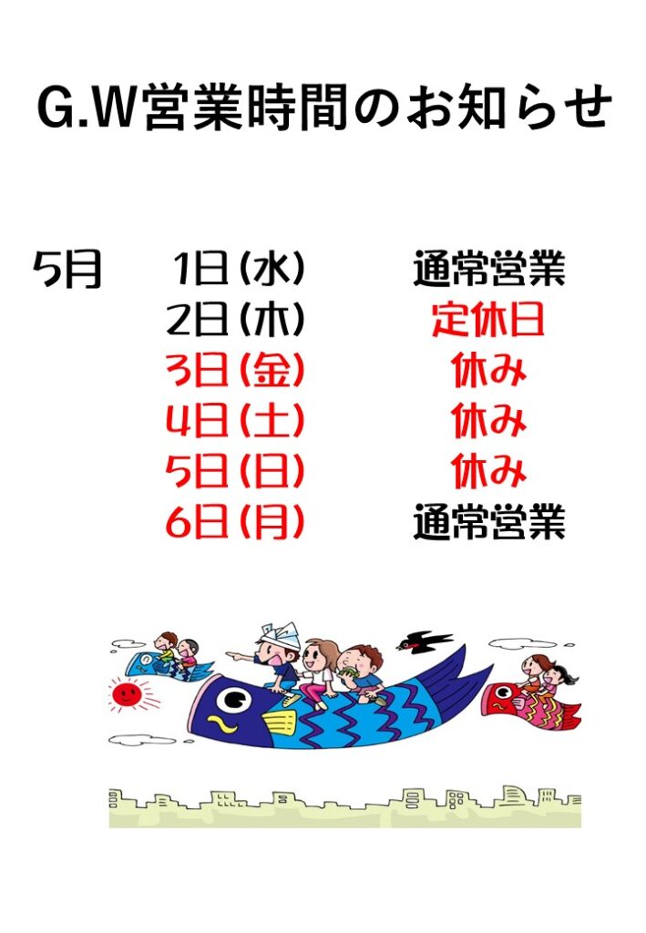 ゴールデンウイーク営業のご案内