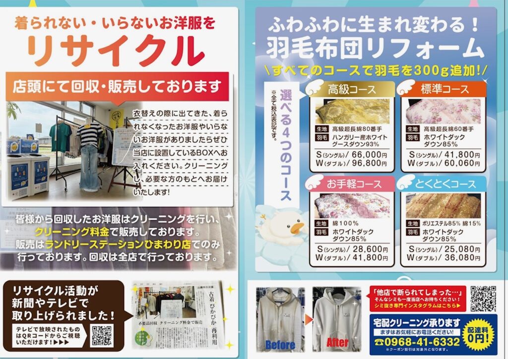 山鹿市、菊池市に4店舗!クリーニングハウスひまわりのページへようこそ!