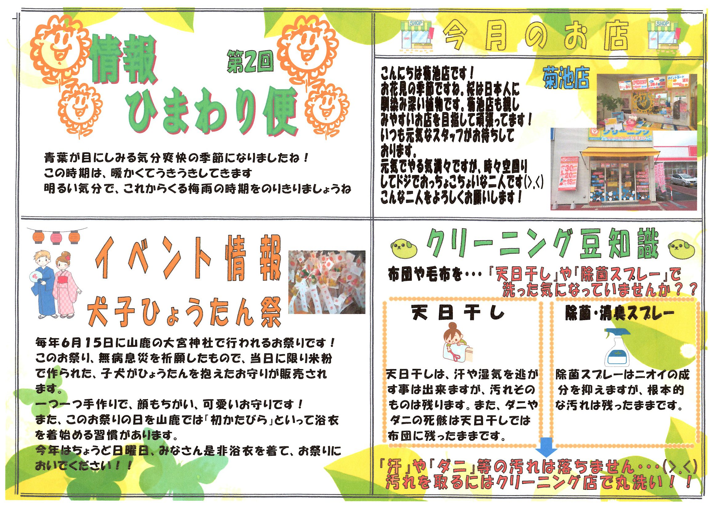 山鹿市、菊池市に4店舗!クリーニングハウスひまわりのページへようこそ!