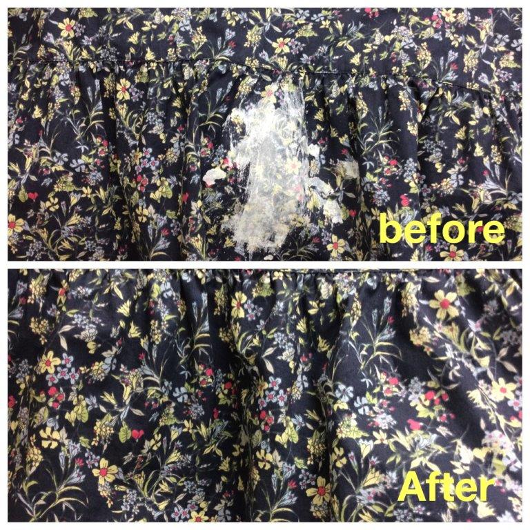 染み抜きした衣類は処置方法・シミの周りの汚れ具合などもう一度確認して、ドライクリーニングかウエットクリーニングをするのかを判断します。クリーニングを行うことで、全体的についている表面上の汚れなどを洗い(濯ぐ)流します。また万一、繊維の中に残っていた薬品も完全に除去できますし、染み抜きした箇所だけが綺麗になって目立ちすぎる事もなくなります。