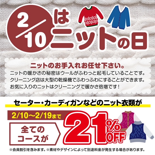 クリーニングハウスひまわりです! 本日は2月10日「ニットの日」ですね!そこでニ... -