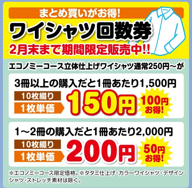 Yシャツ回数券セールスタート