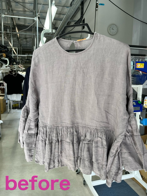 麻のブラウスのビフォーアフターです。麻製品はとても着心地はいいのですがしわが... -