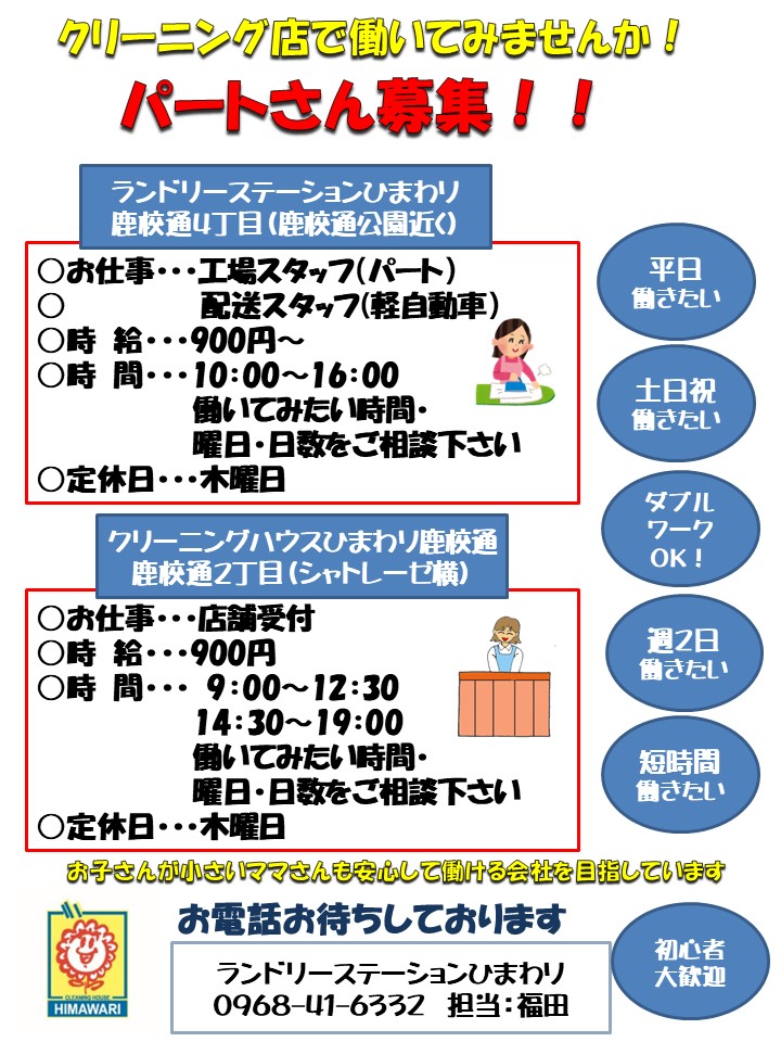 パートさん募集中!