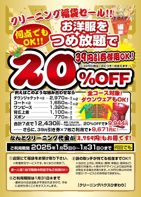\お知らせ//毎年恒例(!)新年のクリーニング詰め放題福袋の専用福袋を配布中です!※... -