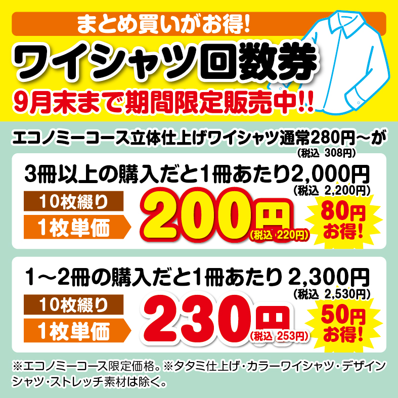 Yシャツ回数券セール開催中!